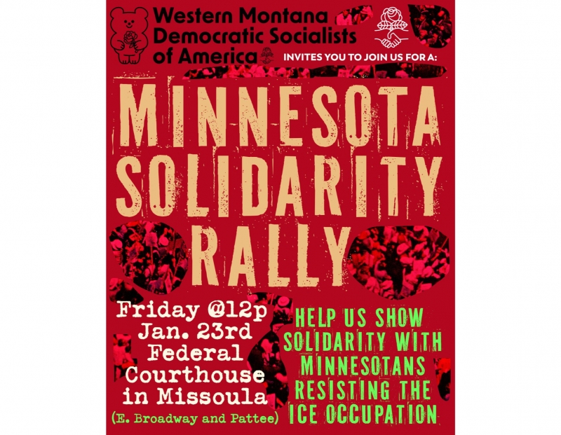 In solidarity and inspiration there will be a rally from Noon to 1:00 pm on Friday January 23 at the Federal Courthouse in Missoula, 201 E Broadway St.