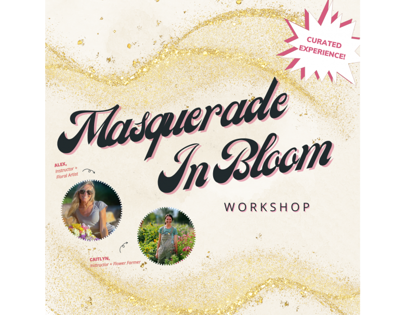 Join us Tuesday October 7th 5:30-7:30pm for a creative evening of mask-making with dried and pressed florals. Artist, Alex and Flower Farmer, Caitlyn will guide you step by step as you design your own custom masquerade mask, learning simple floral techniques along the way.