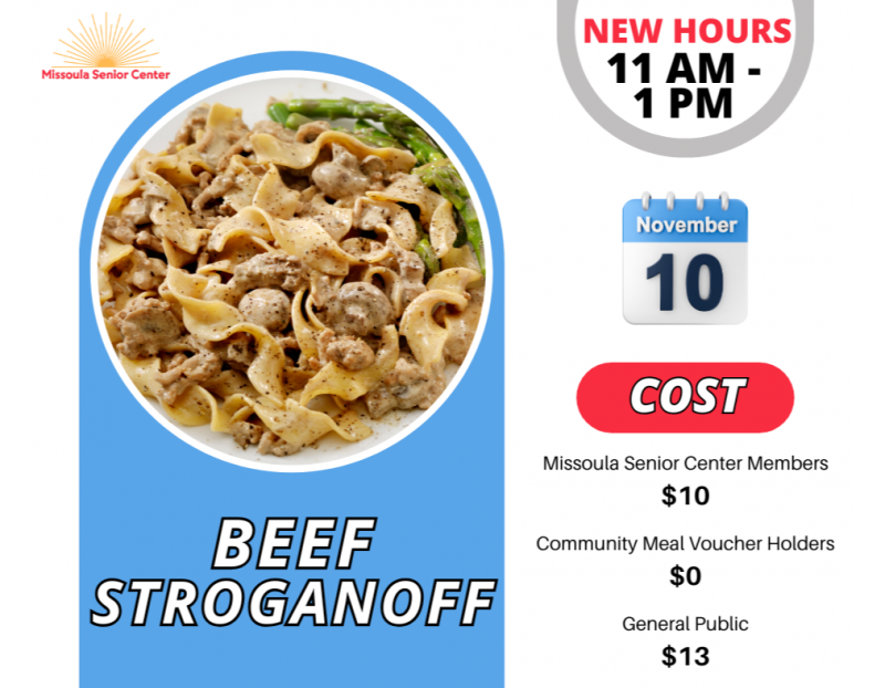 Every Monday-Friday the Missoula Senior Center offers lunch from 11:00-1:00.