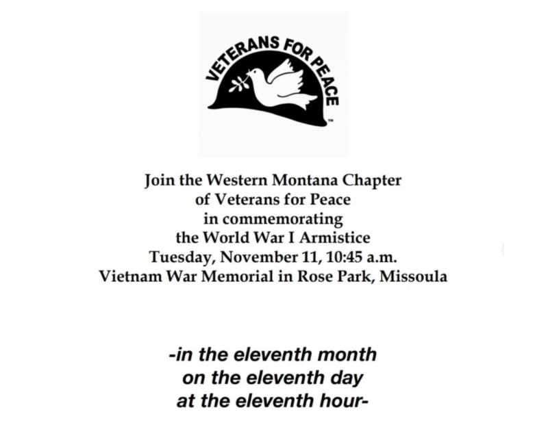Join the Western Montana Chapter of Veterans for Peace in commemorating the World War I Armistice
