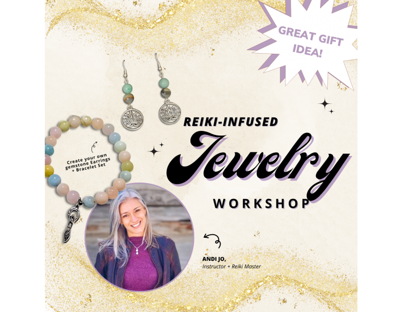 You’re invited to join us for our Reiki-Infused Jewelry Workshop on Thursday, November 13, from 5–6:30 pm, held in Golden Leaf Studios’ Community Space. Guided by Andi Jo—Reiki Master owner of Sovereign Soul Reiki & Wellness—this workshop offers a one-of-a-kind energetic journey, designed to align your spirit deepen your connection to your meditation practice.