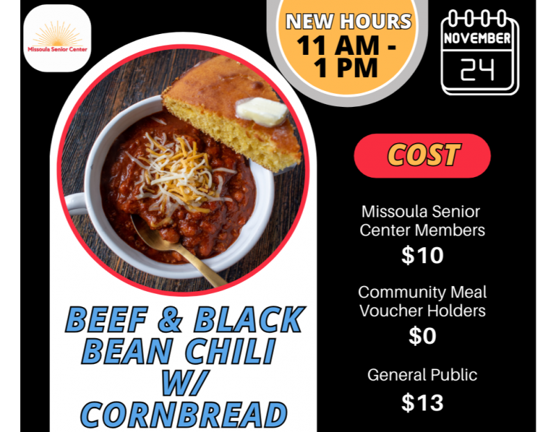 Every Monday-Friday the Missoula Senior Center offers lunch from 11:00-1:00.