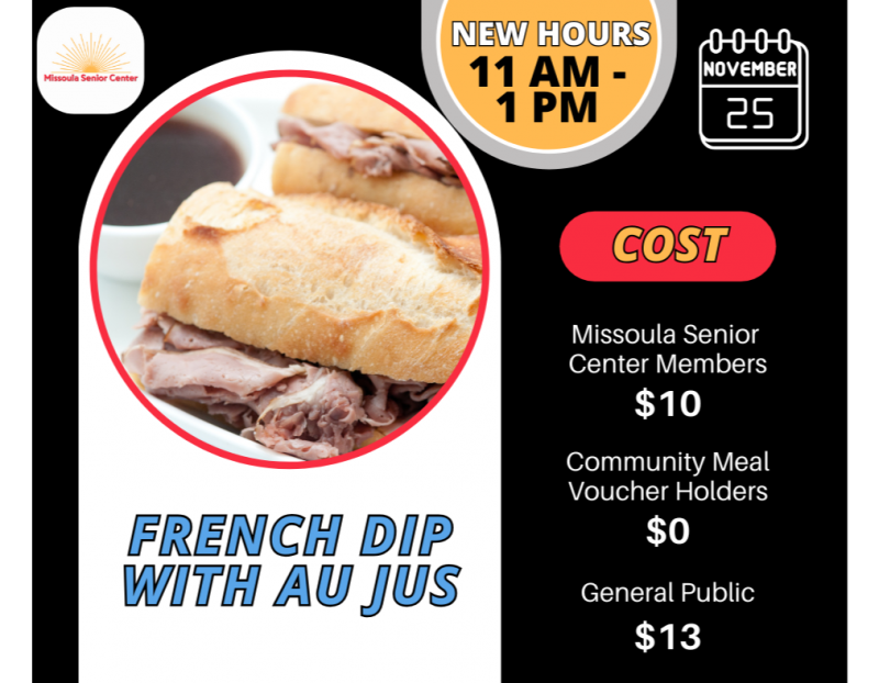 Every Monday-Friday the Missoula Senior Center offers lunch from 11:00-1:00.