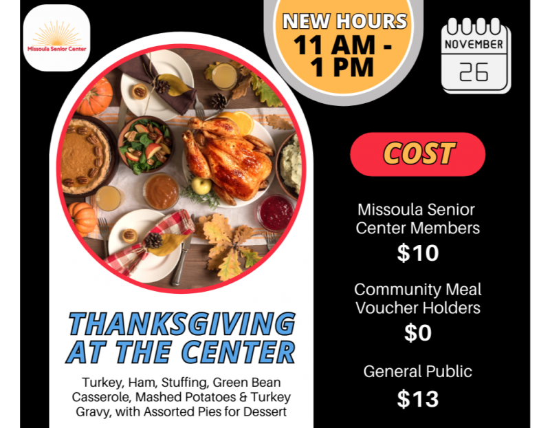 Every Monday-Friday the Missoula Senior Center offers lunch from 11:00-1:00.