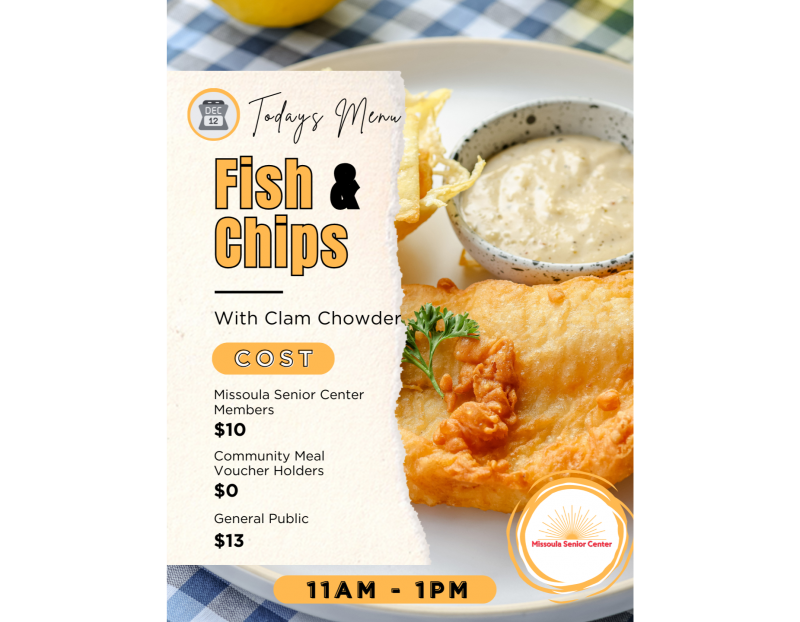 Every Monday-Friday the Missoula Senior Center offers lunch from 11:00-1:00.